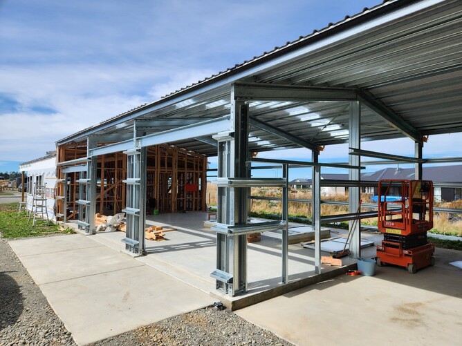 As the showhome for our shed home line, this property showcases the various options available for clients to personalize our standard designs. Features include covered patios, extra and higher garages, and carports, along with stylish upgrades like cedar cladding, highlighted joinery, and garage carpeting.
