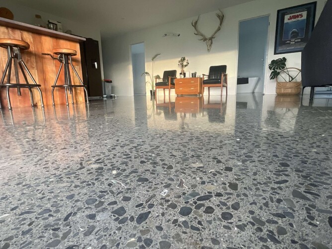 Our client approached us with a layout concept for their 4-bedroom home on a lifestyle block in Kaikoura. They desired a low-maintenance look and function, opting for steel cladding with standout features, including a horizontal cedar wall and Kwila decking. These elements beautifully complemented the polished concrete floors, which were inlaid with paua for a unique, natural touch.