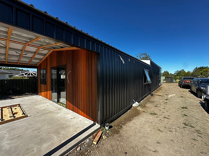 Our client family had been owned this land for many generation and wanted a solution to both downsize and setup the property for the next generation to live on this incredible property. The solution came in the shape of a custom shedhome - 1 comfortable 64m2, 1 bedroom granny flat on the end of a 88m2 garage workshop. With the addition of 2.6m roller doors, a covered patio and cedar cladding, this home put a smile on everyones face!